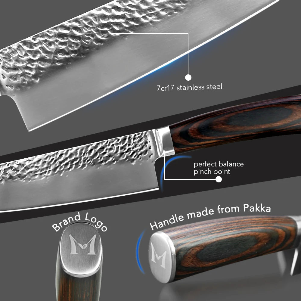 Couteau de Chef Japonais – Acier 7CR17 Haute Carbone, Manche Pakka Bois
